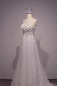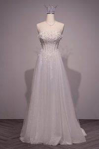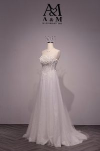 Váy cưới đi bàn đính kim sa mang vẻ đẹp lấp lánh đầy cuốn hút, giúp cô dâu luôn tỏa sáng trong từng khoảnh khắc giao lưu cùng khách mời. Những chi tiết kim sa đính kết tinh xảo được sắp xếp hài hòa, tạo hiệu ứng bắt sáng nhẹ nhàng nhưng vẫn sang trọng, tôn lên nét kiêu sa và quý phái.